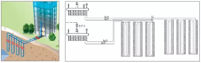 根据《绿建标准》中“节能与能源利用”的相关标准,要求“ 5.2.16 根据当地气候和自然资源条件,合理利用可再生能源”。本项目中,冷热源采用地热源代替传统“锅炉”、“冷却塔”,利用地下浅层资源,在土壤中吸收(排放)热量的水源热泵机组。比传统空调系统运行更高效、更节能。