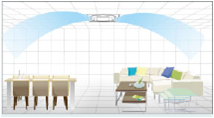 风管式室内机的风口设置可与实际空调机分离,在不规则房间(如L型、U型)中根据照明情况及人的活动情况合理设置出风口位置,提供更佳的气流分布。