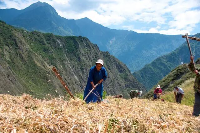 图为项目开展后帮助当地居民利用有限的土地资源开垦出来的梯田和试验田