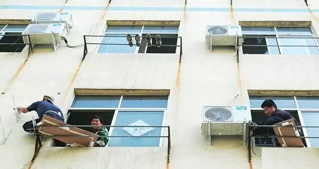 很多建筑高楼外墙设计并不合理, 空调安装维修非常危险, 他们赚的每一分钱,都浸透了他们的汗水乃至生命;