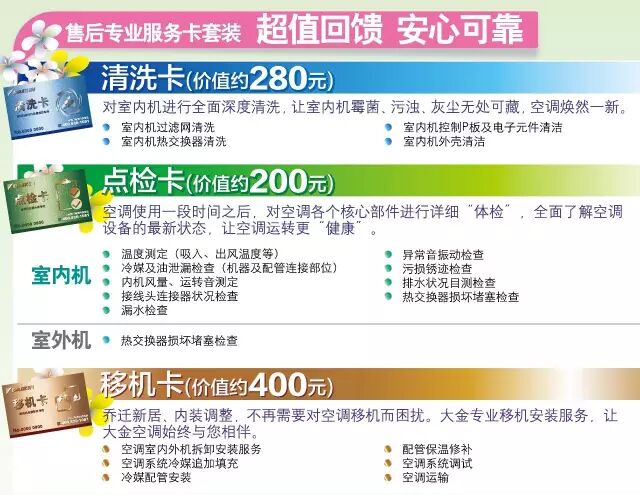 购买 E-MAX 7 Plus系列和 E-MAX 7系列挂壁机即可获赠由大金售后提供的专业服务卡套装1份,价值约880元哦!售后专业服务卡套装,超值回馈安心可靠。