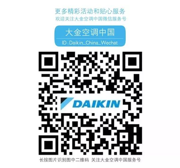 想了解更多产品信息,扫一扫下方二维码,关注“大金空调中国”官方微信,还有更多精彩内容!