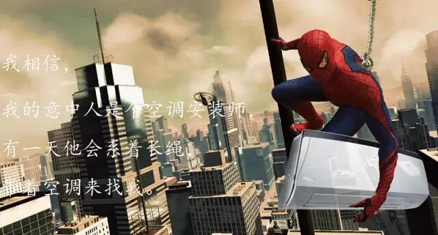 我相信,我的意中人是个空调安装师,有一天他会系着长绳,带着空调来找我。
