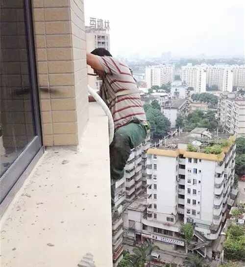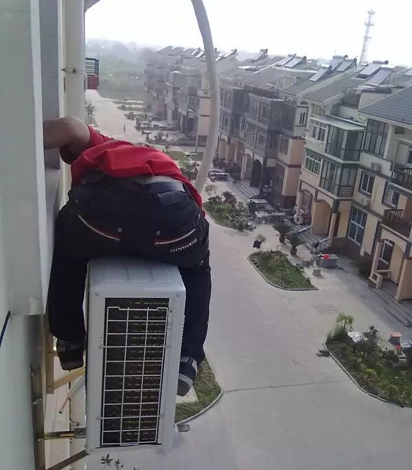 空调安装师傅——艰辛与梦想都穿梭在墙壁上了。