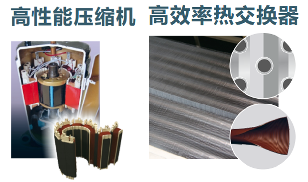 独创的压缩机龙骨马达,通过在展开的定子铁芯上高度地卷上铜线后再合起的工艺,马达的体积大幅度减小,实现了绕线的紧密化和体积的缩小,大大提高了马达的效率