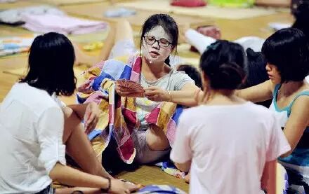 馆内摆上一排盖红布的桌子,作为划分男女住宿的分割线。