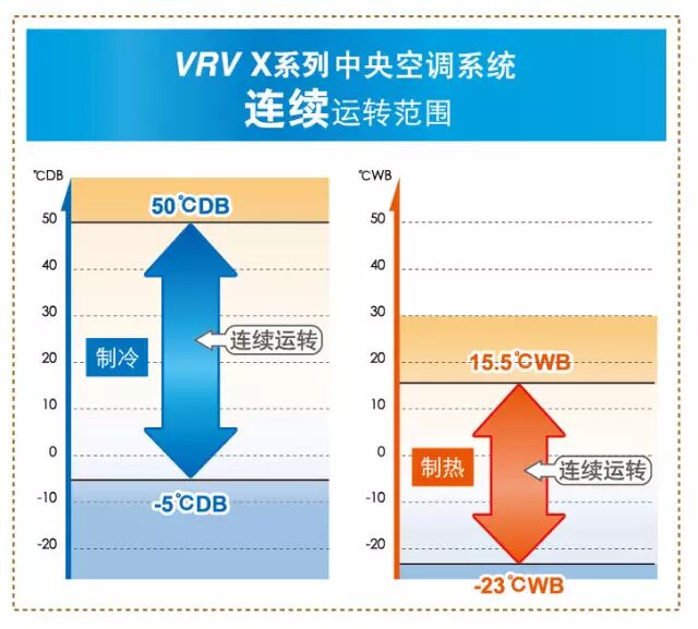 对于严苛的环境温度,大金有着自己的应对方法,大金VRV X系列中央空调系统自身就有着宽广的连续运转范围,制冷时可连续运转的室外温度最高可达50℃。然而大金秉承着从始至终对自己的高标准,并不仅仅满足于此,为了能够有更稳定的运转,更灵敏精准的计算反馈,大金VRV X系列中央空调系统在风扇散热的同时采用了大金独有的CoolMAX芯片液冷恒温技术。