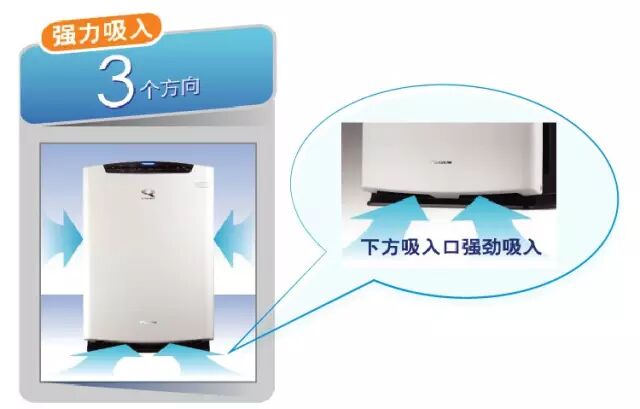 如果室内空气想获得更多的净化次数,就要求更快吸入污浊空气。大金以426m³/h的超大风量从3个方向吸入污浊空气,甚至连地板上的粉尘,也能强力吸入。